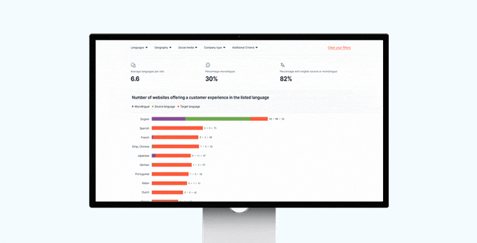 You are 75% more effective at selling to international customers when you speak their language. The Global Language Benchmarker shows how your language coverage compares to competitors so you can identify gaps and opportunities.